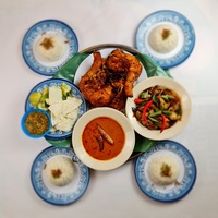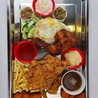 Di hidangkan bersama Nasi Kuning dan mempunyai 2 pilihan lauk ayam saiz berbeza.