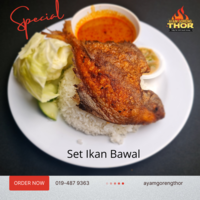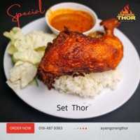 SET THOR khas untuk 4 orang makan.Nasi Putih 4Ayam Goreng Paha Besar 1/4 ada 4 ketulGulai 4 orang makanSambal Belacan 4 Ulam Timun GobisLala ShellOutTelur Dadar