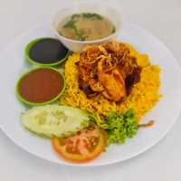 Di datangkan bersama Nasi Kuning, Ayam Goreng Paha Besar 1/4 yang sangat crunchy di luar, juice di dalam. Cili Sos dan Kicap serta Tomato dan Salad.